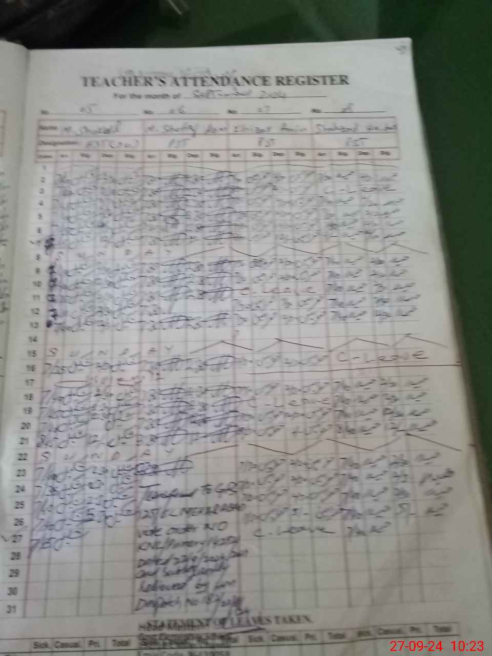 | Remarks (Use Separate Page if Required): Aziz mohyudin cnic 3610401955231 sese is absentee since 7 6 2021 total absentee 1209 days up till now no action taken by DEO | |||||
