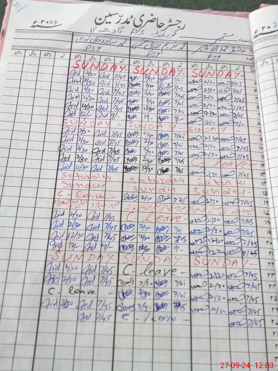 | 31**** | Mu**** Na**** Iq**** | PST | Regular | 0 | 0 | 0 | 0 | 0 | 0 | 0 | 0 | 0 | Absent (Un-Authorized) |