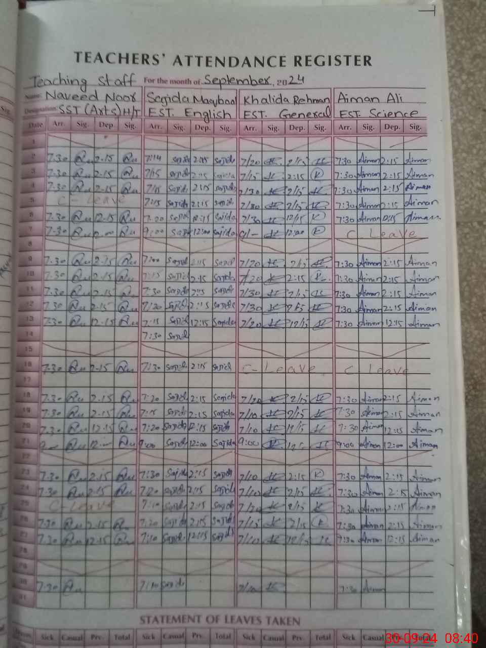 | Leave | Duty | Absent | Maternity | Medical | Ex- Pak |