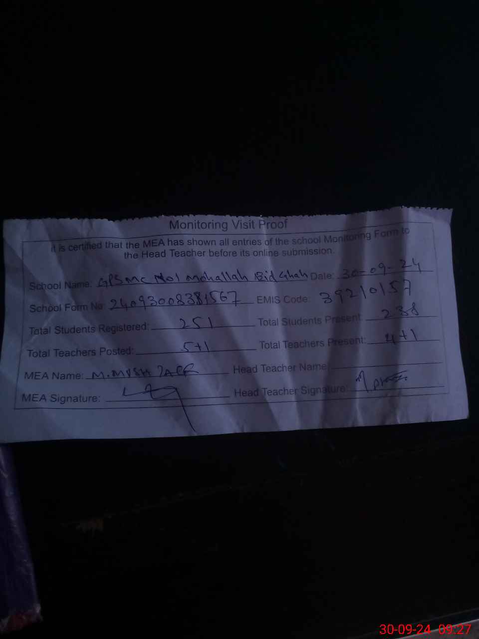 | EMIS Code: 39210157 | Name of School: GPS MC NO. 1 MOHALLAH EID GAH | |||