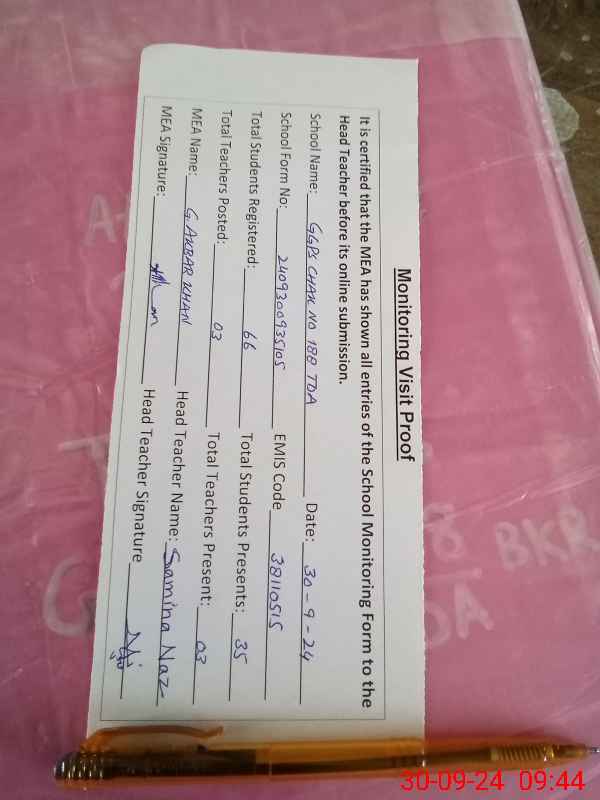 | Monitoring Date: 30-09-2024 | Start Time: 30-09-2024 09:27 AM | End Time: 30-09-2024 09:44 AM | Name of MEA: Gh**** Ak**** Kh**** | |