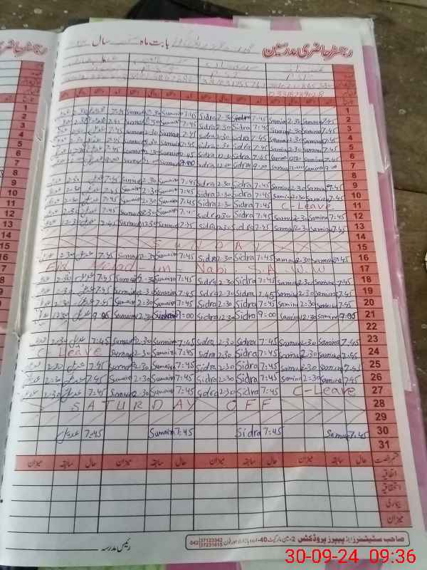 | CNIC | Full Name | Designation | R/C | Absence During Last Calender Month |