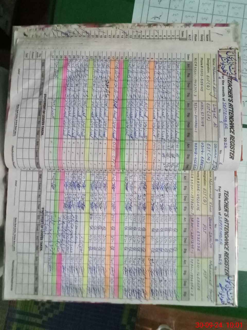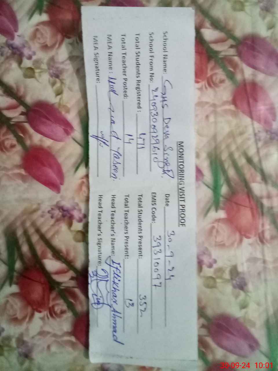 | Name: IF**** AH**** Designation: (School Headmaster's/Headmistress's) SST INCHARGE HM Phone/Cell Number: 03**** |