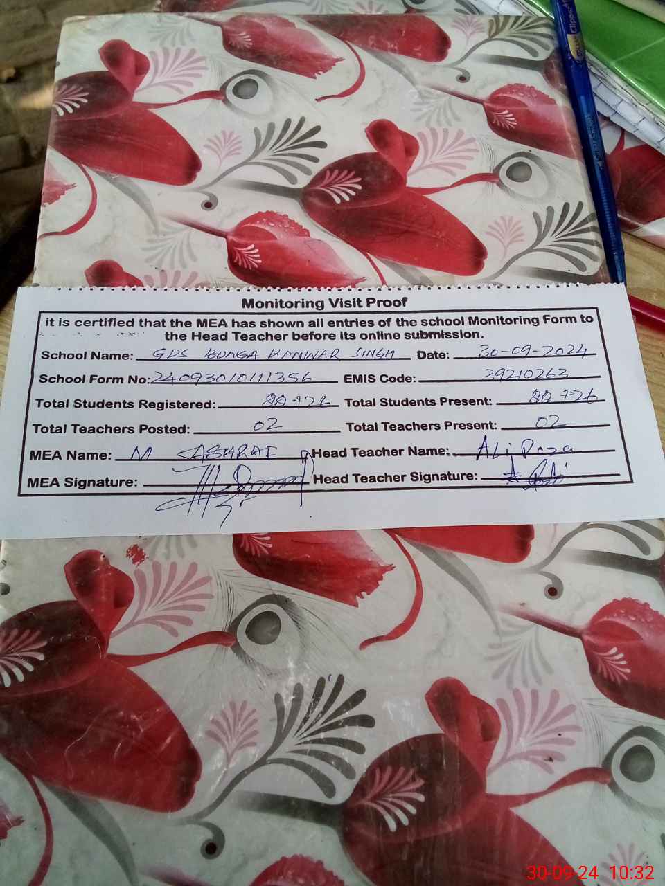 | EMIS Code: 39210263 | Name of School: GPS BUNGA KANWAR SINGH | |||
