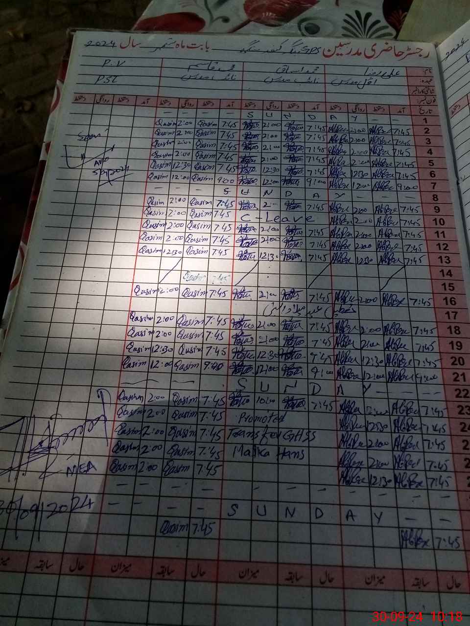 | Name: AL**** RA**** Designation: (School Headmaster's/Headmistress's) PST Phone/Cell Number: 03**** |