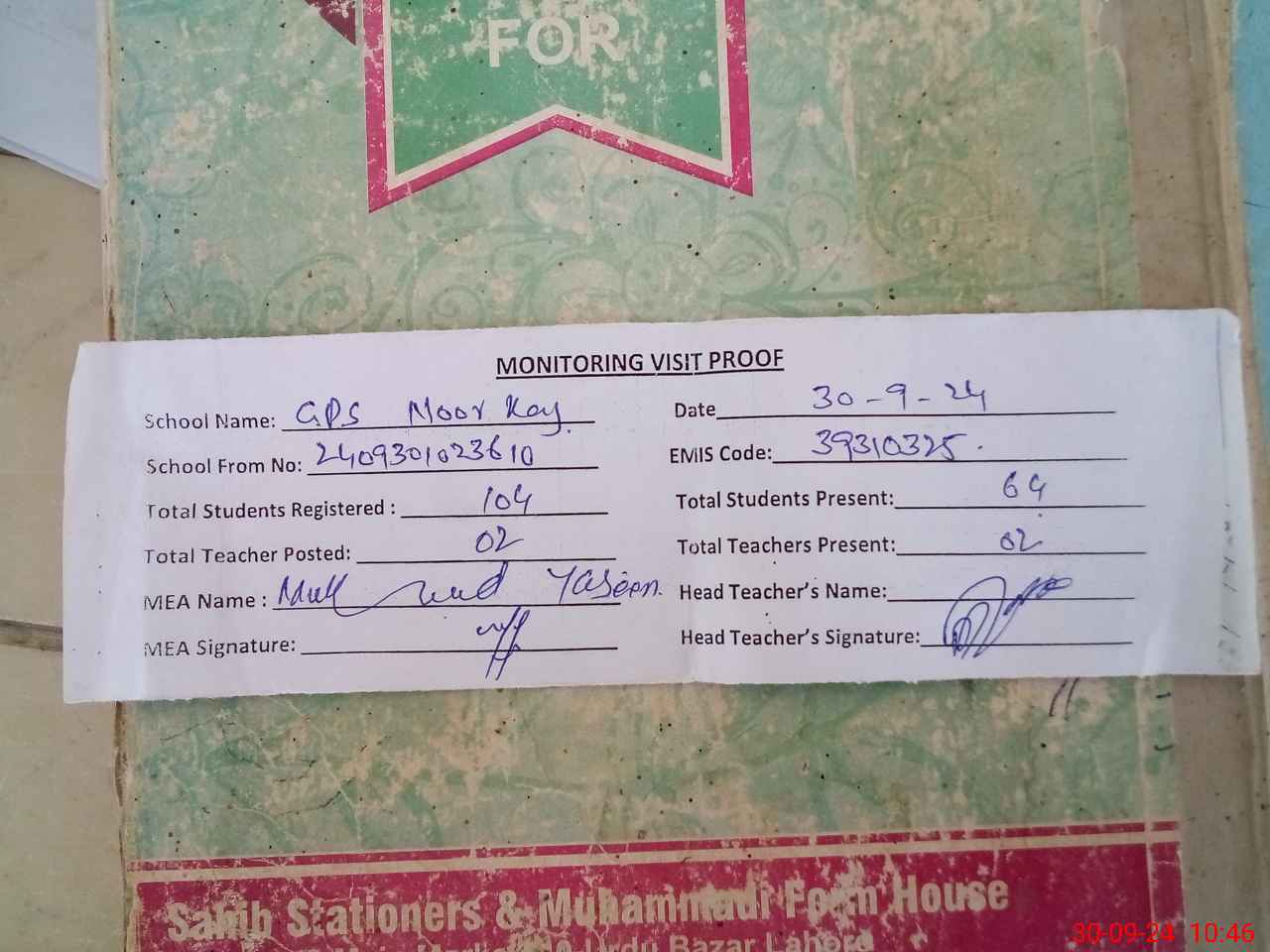 | EMIS Code: 39310325 | Name of School: GPS NOOR KAY | |||
