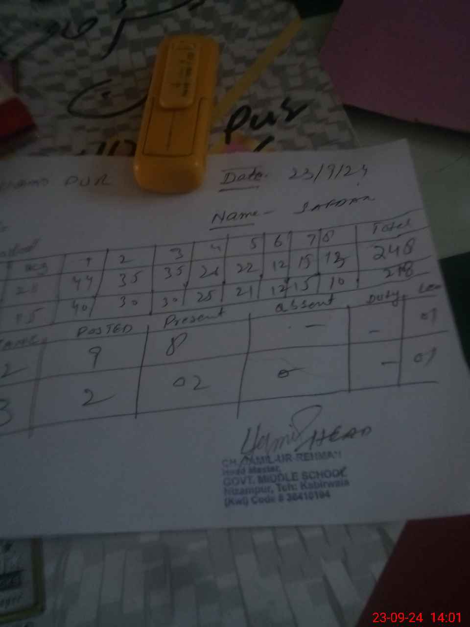 | Monitoring Date: 23-09-2024 | Start Time: 23-09-2024 01:27 PM | End Time: 23-09-2024 02:02 PM | Name of MEA: MU**** SA**** HU**** | |
