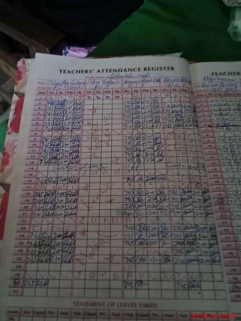 | 36**** | Sa**** Ya**** | PST | Regular | 16 | 0 | 0 | 0 | 16 | 0 | 0 | 0 | 0 | Medical |