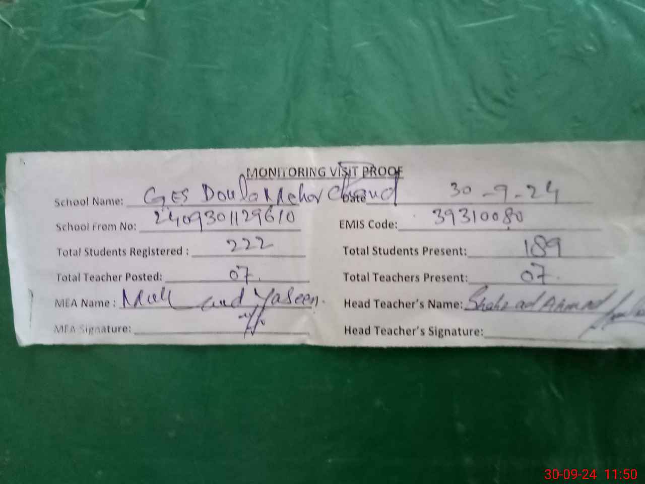 | EMIS Code: 39310080 | Name of School: GES DOULA MEHAR CHAND | |||