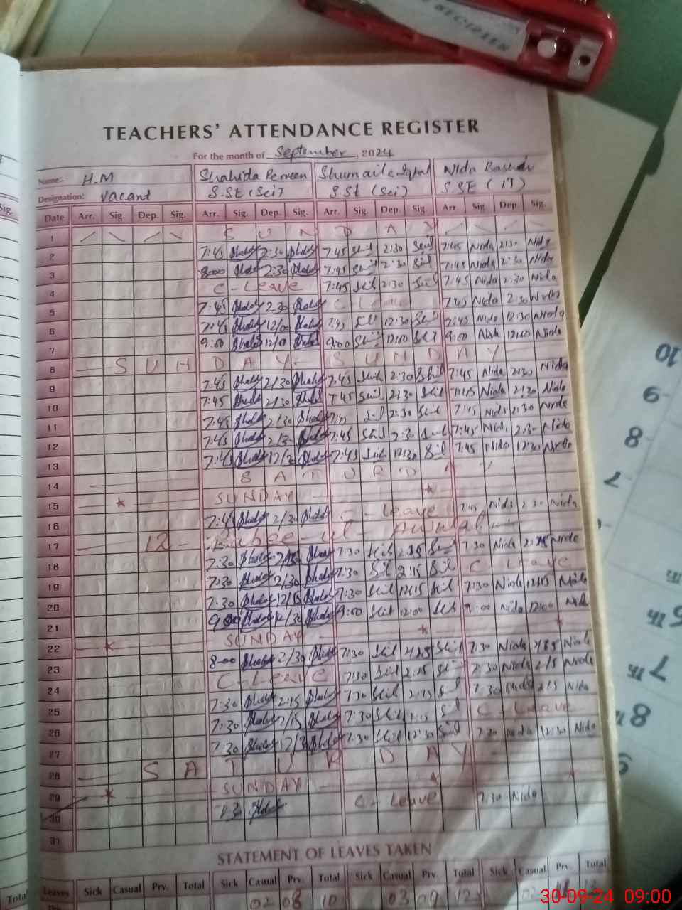 | Remarks (Use Separate Page if Required): During random attendance of 15 students listed students are promoted and left the school | |||||
