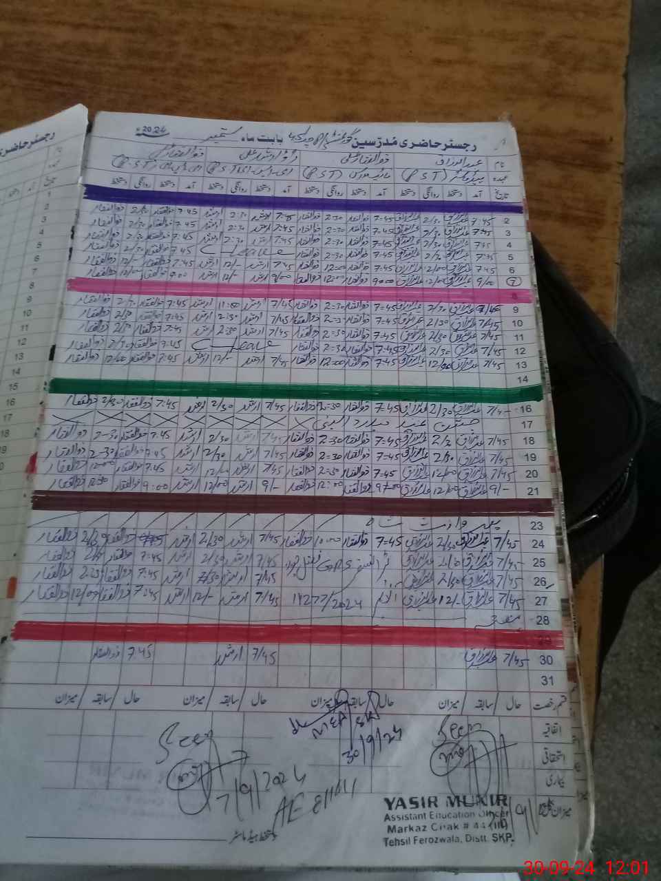 | Name: AB**** RA**** Designation: (School Headmaster's/Headmistress's) PST Phone/Cell Number: 03**** |