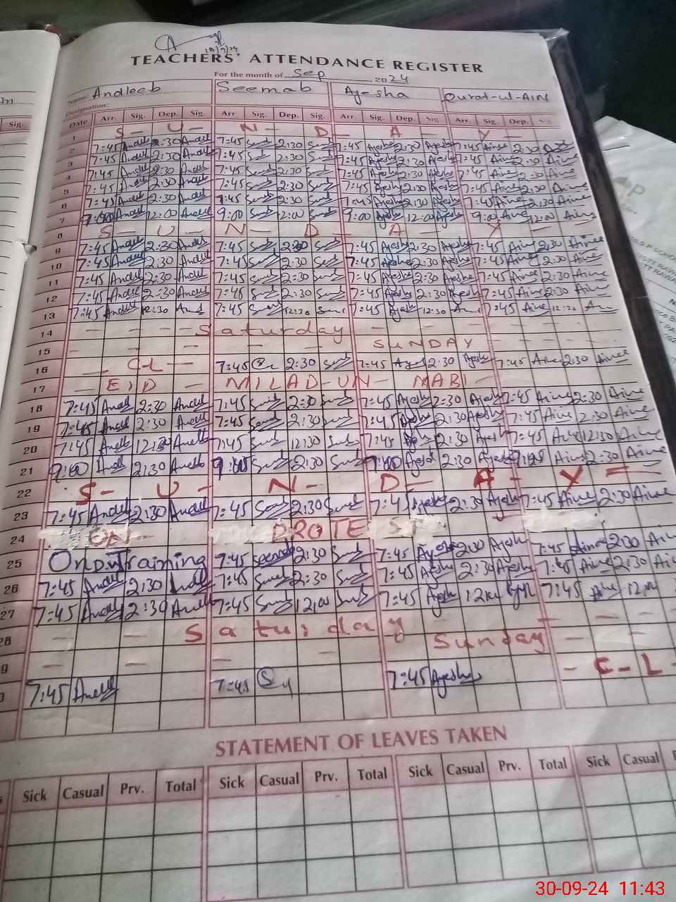 | 37**** | Ay**** Ha**** | PST | Regular | 0 | 0 | 0 | 0 | 0 | 0 | 0 | 0 | 0 | Absent (Un-Authorized) |