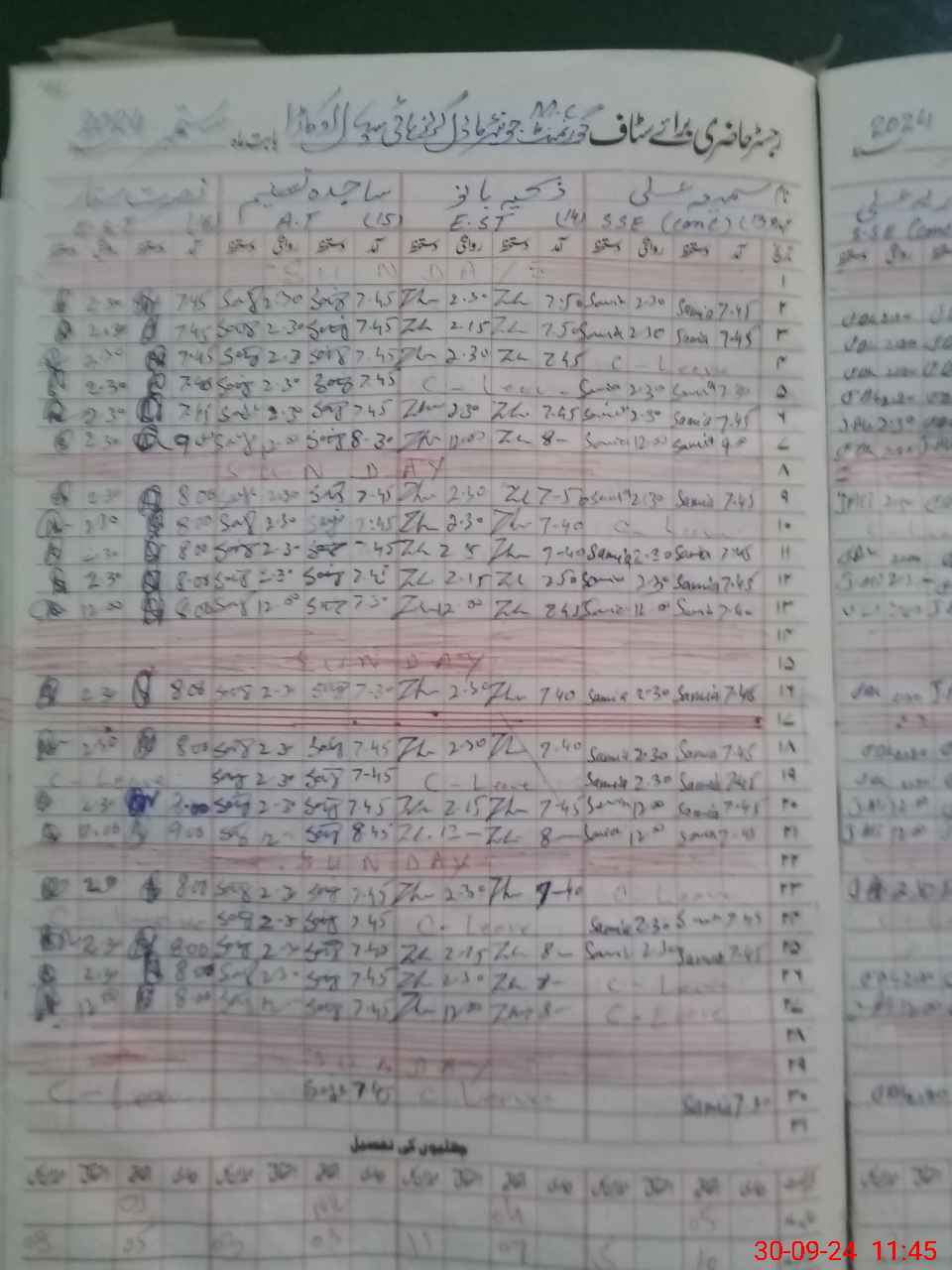 | Leave | Duty | Absent | Maternity | Medical | Ex- Pak |