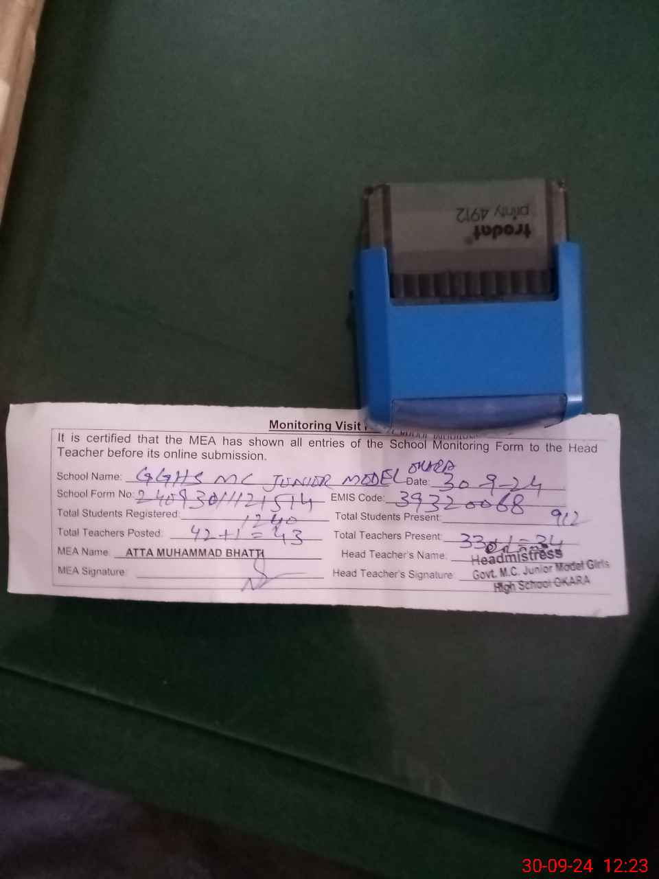 | EMIS Code: 39320068 | Name of School: GGHS MC JUNIOR MODEL OKARA | |||