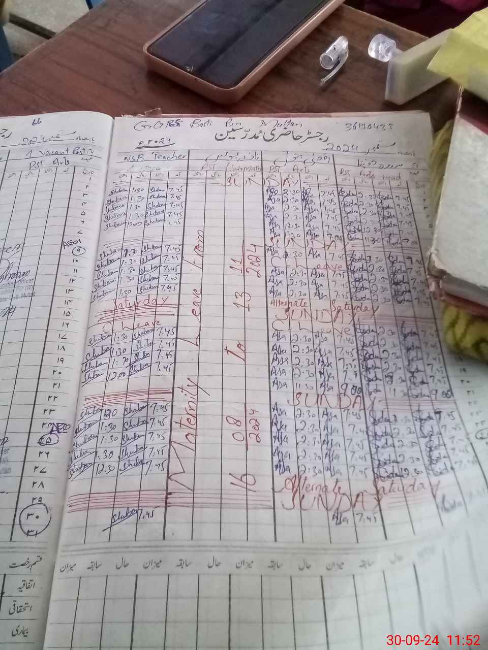 | Leave | Duty | Absent | Maternity | Medical | Ex- Pak |
