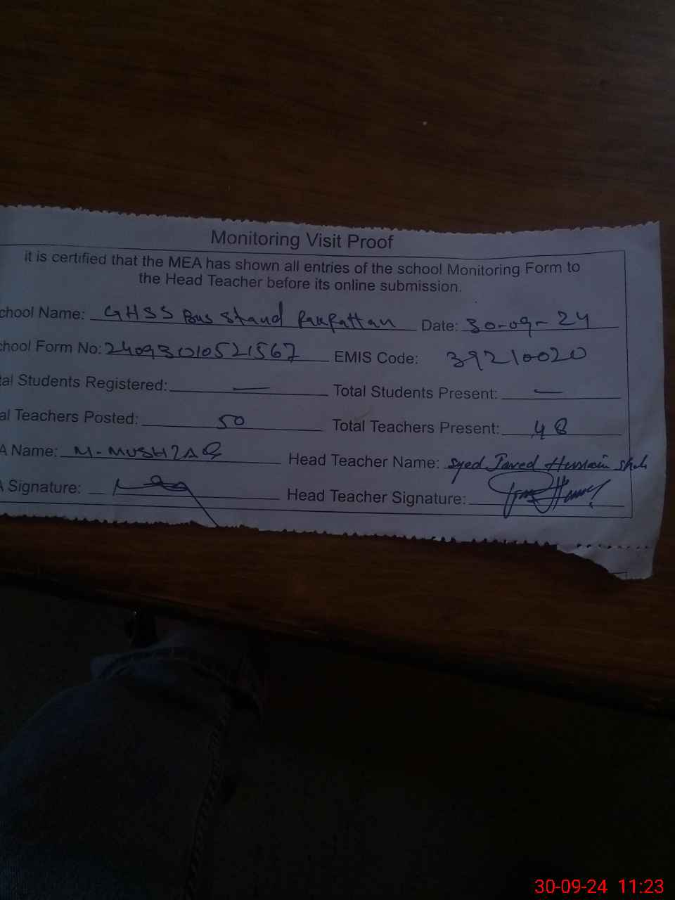 | EMIS Code: 39210020 | Name of School: GHSS BUS STAND PAKPATTAN | |||