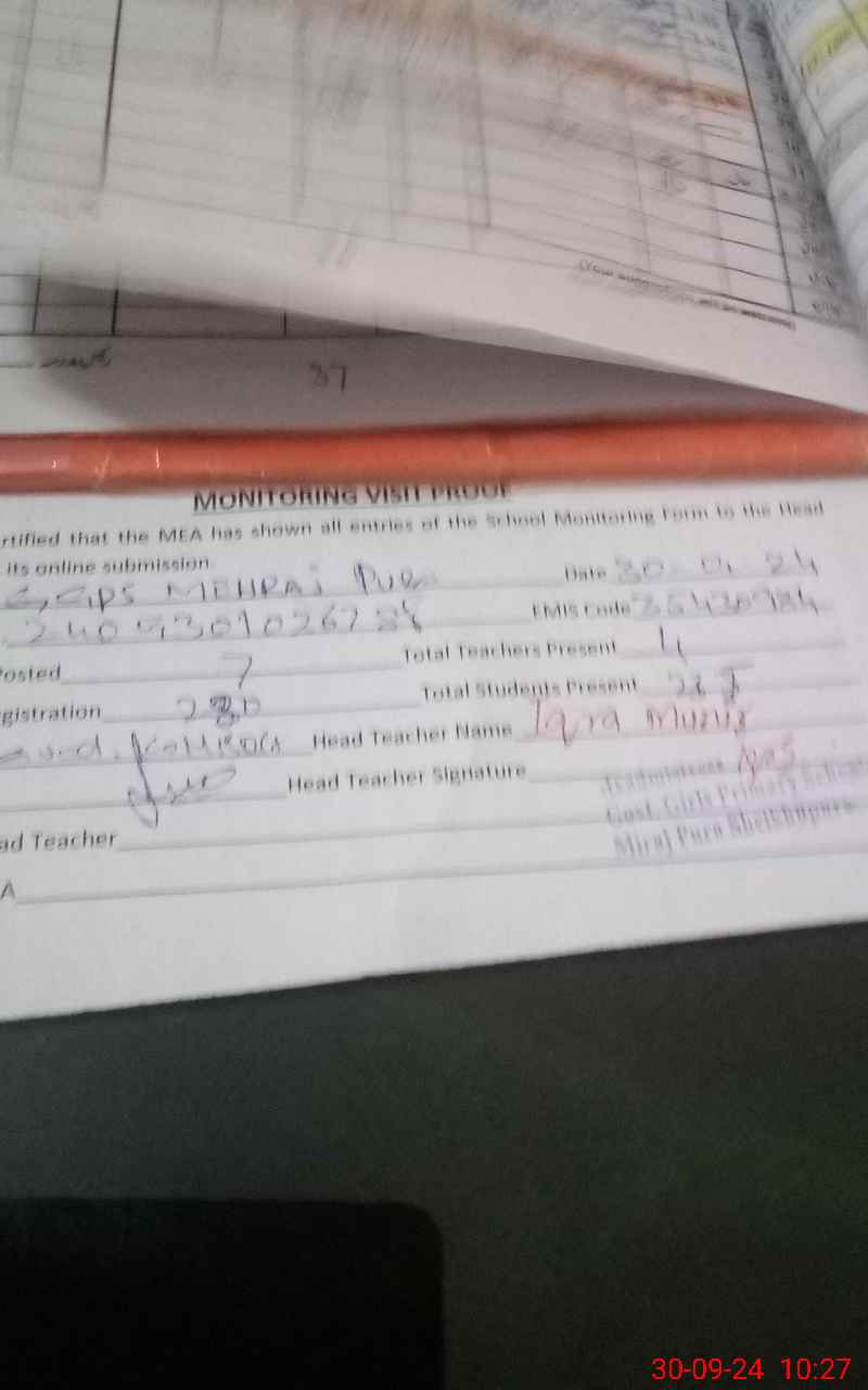 | EMIS Code: 35430984 | Name of School: GGPS MEHRAJ PURA | |||
