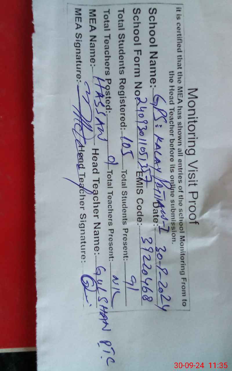| EMIS Code: 39220468 | Name of School: GPS KALAY PATHAN NO 1 | |||