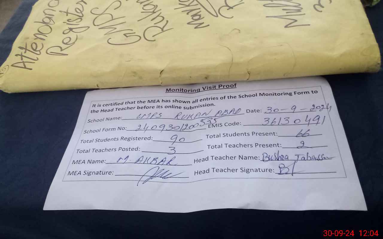 | EMIS Code: 36130491 | Name of School: GMPS RUKAN ABAD | |||