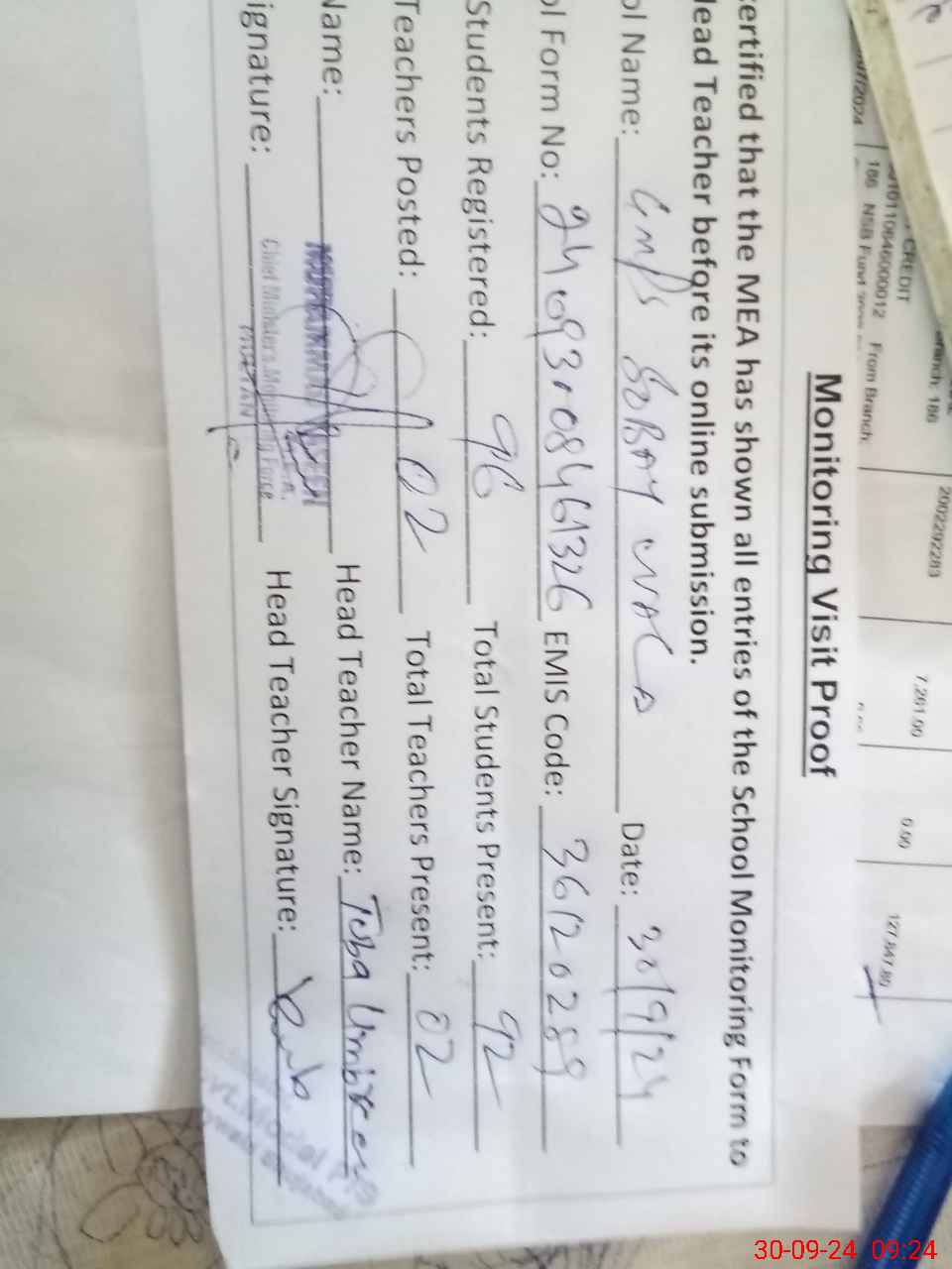| EMIS Code: 36120289 | Name of School: GMPS SOBAY WALA | |||