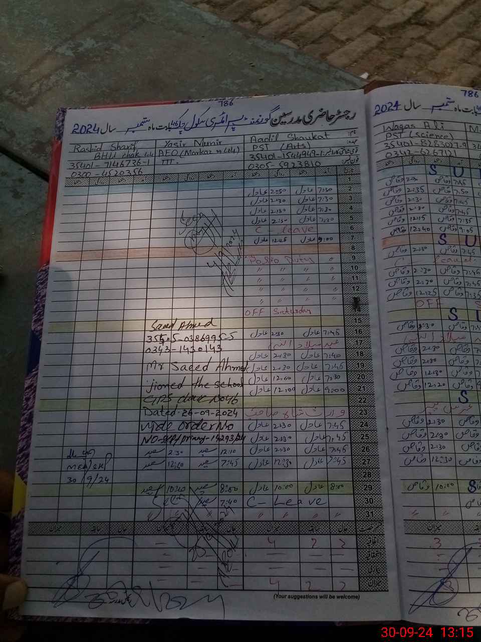 | Name: SH**** HU**** Designation: (School Headmaster's/Headmistress's) PST Phone/Cell Number: 03**** |