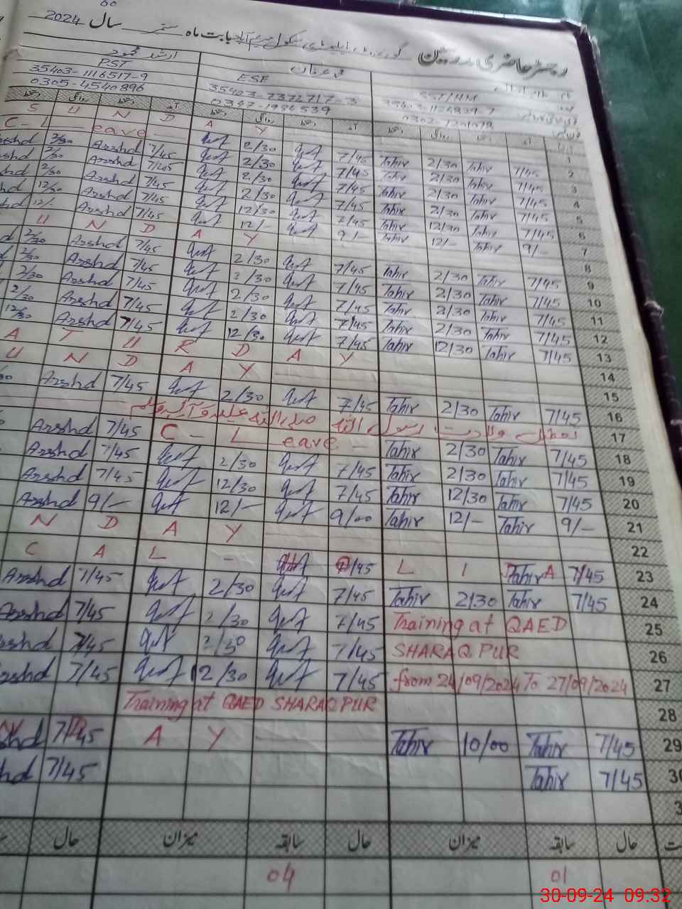 | Leave | Duty | Absent | Maternity | Medical | Ex- Pak |