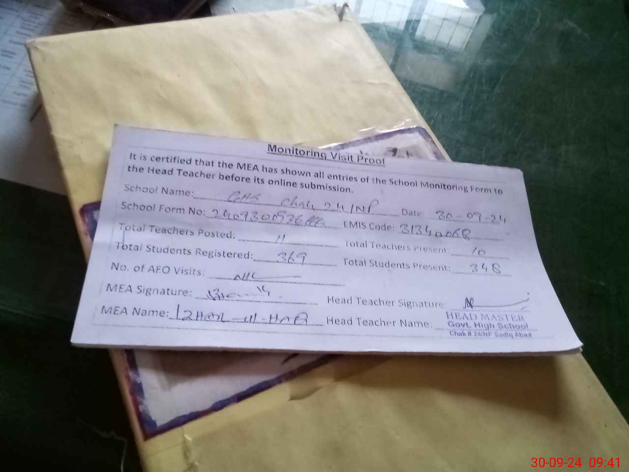 | EMIS Code: 31340068 | Name of School: GHS CHAK NO. 24 NP | |||