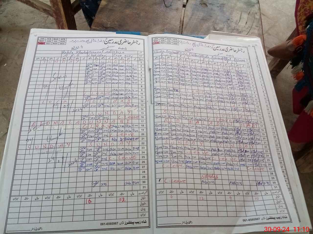 | CNIC | Full Name | Designation | R/C | Absence During Last Calender Month |
