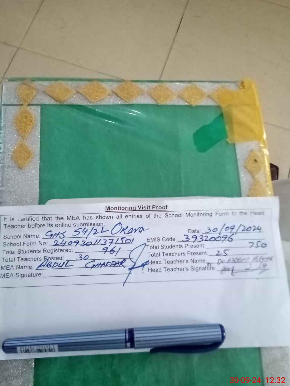 | EMIS Code: 39320096 | Name of School: GHS CHAK NO. 54/2-L | |||