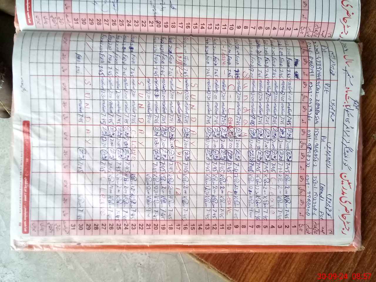 | CNIC | Full Name | Designation | R/C | Absence During Last Calender Month |