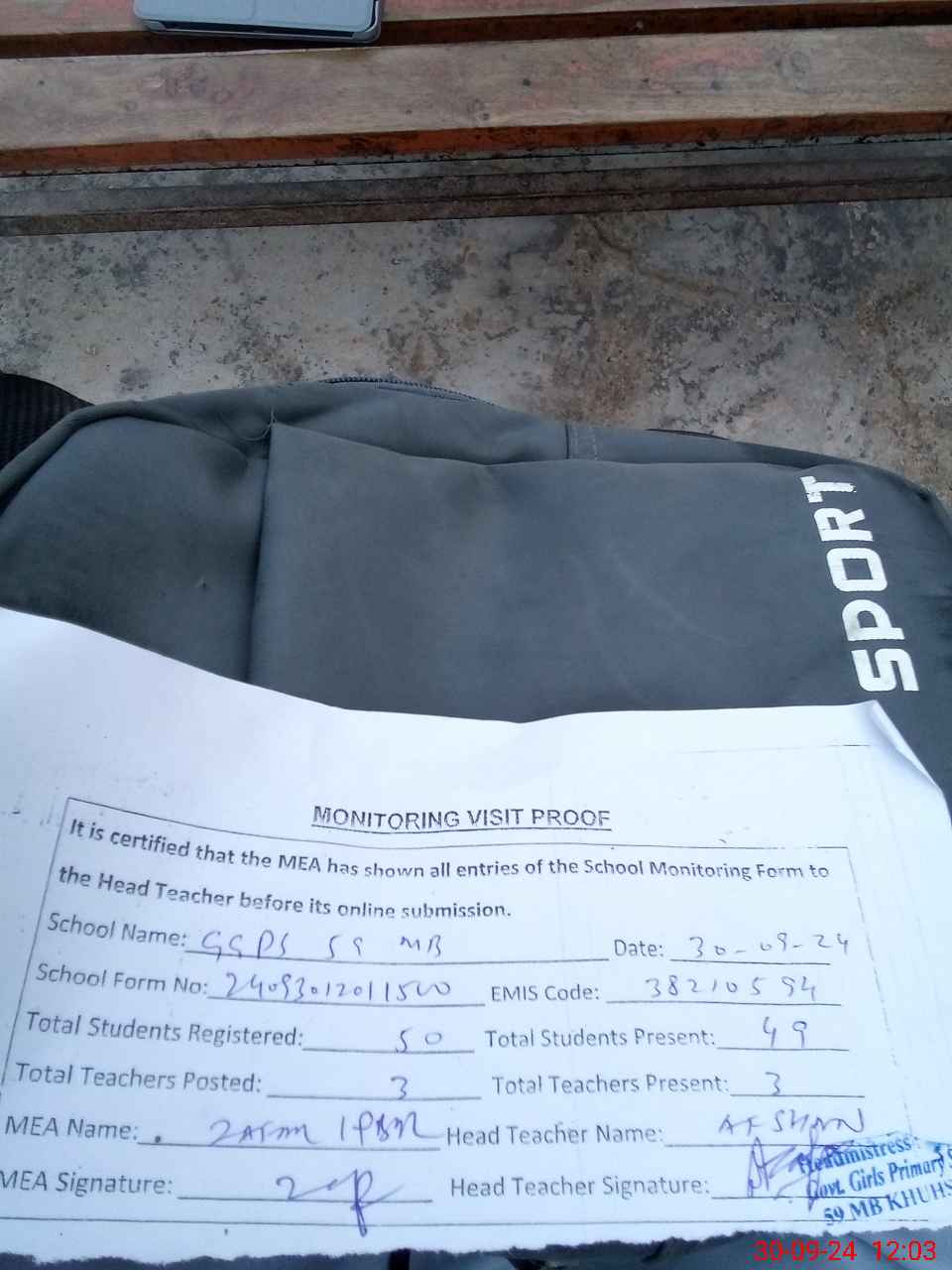 | EMIS Code: 38210594 | Name of School: GGPS CHAK NO. 59 MB | |||