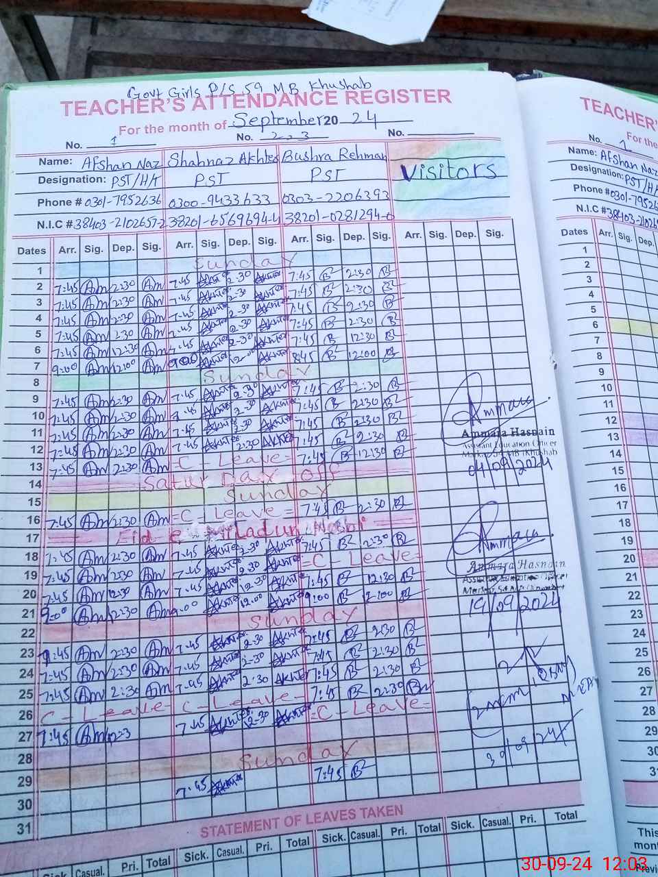 | Name: Af**** Na**** Designation: (School Headmaster's/Headmistress's) PST Phone/Cell Number: 03**** |