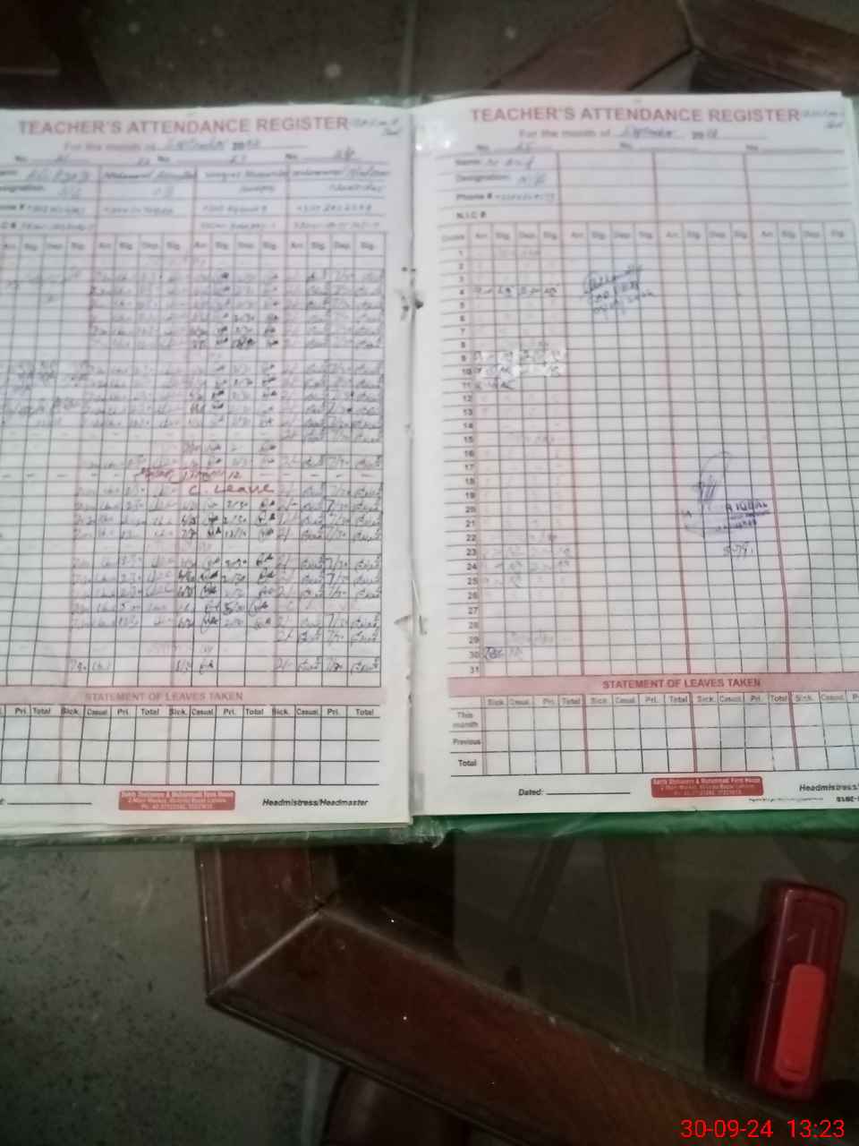 | Leave | Duty | Absent | Maternity | Medical | Ex- Pak |
