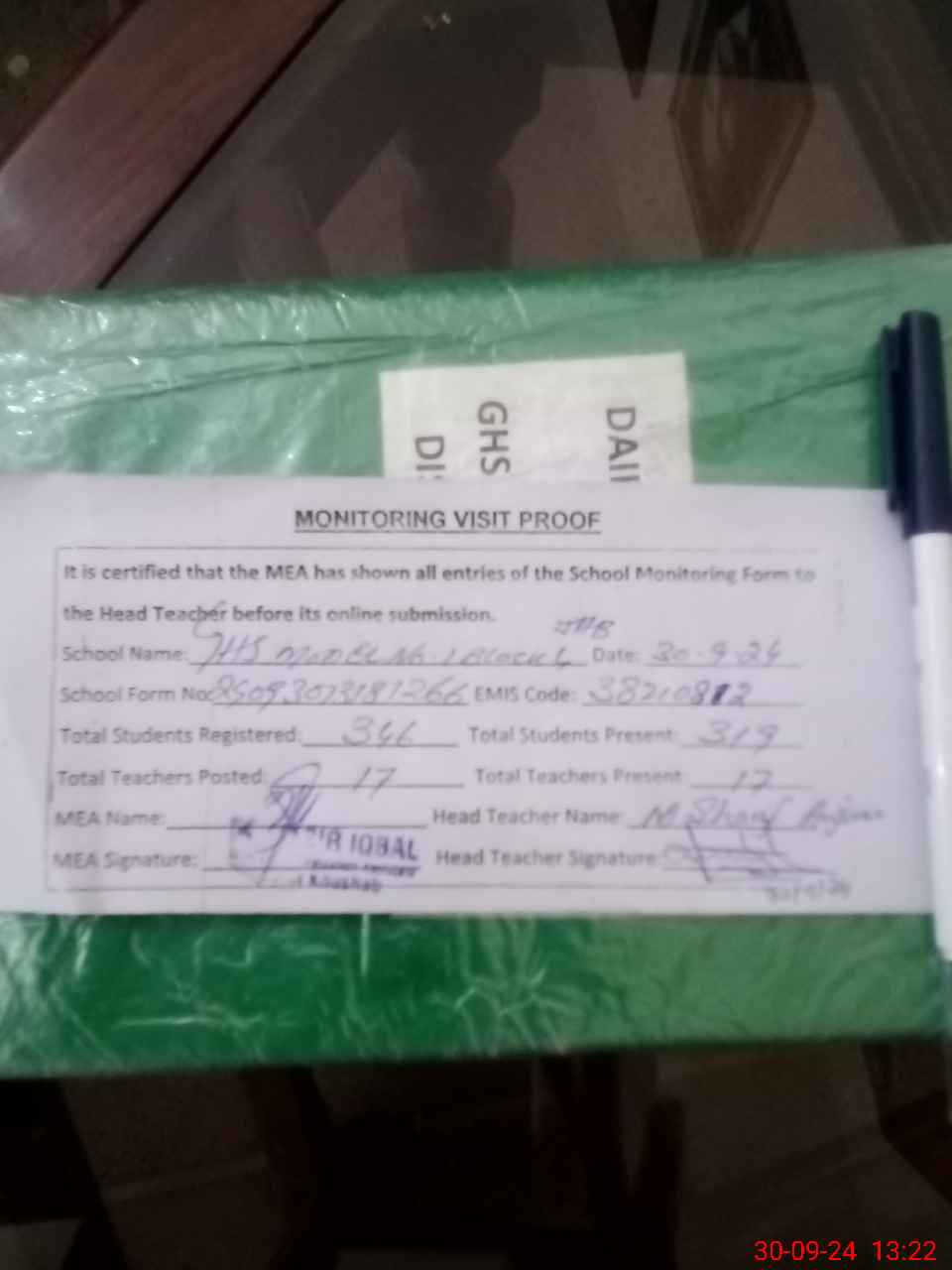 | Attendance Register | Head Teacher | MEA with School | Visit Proof |