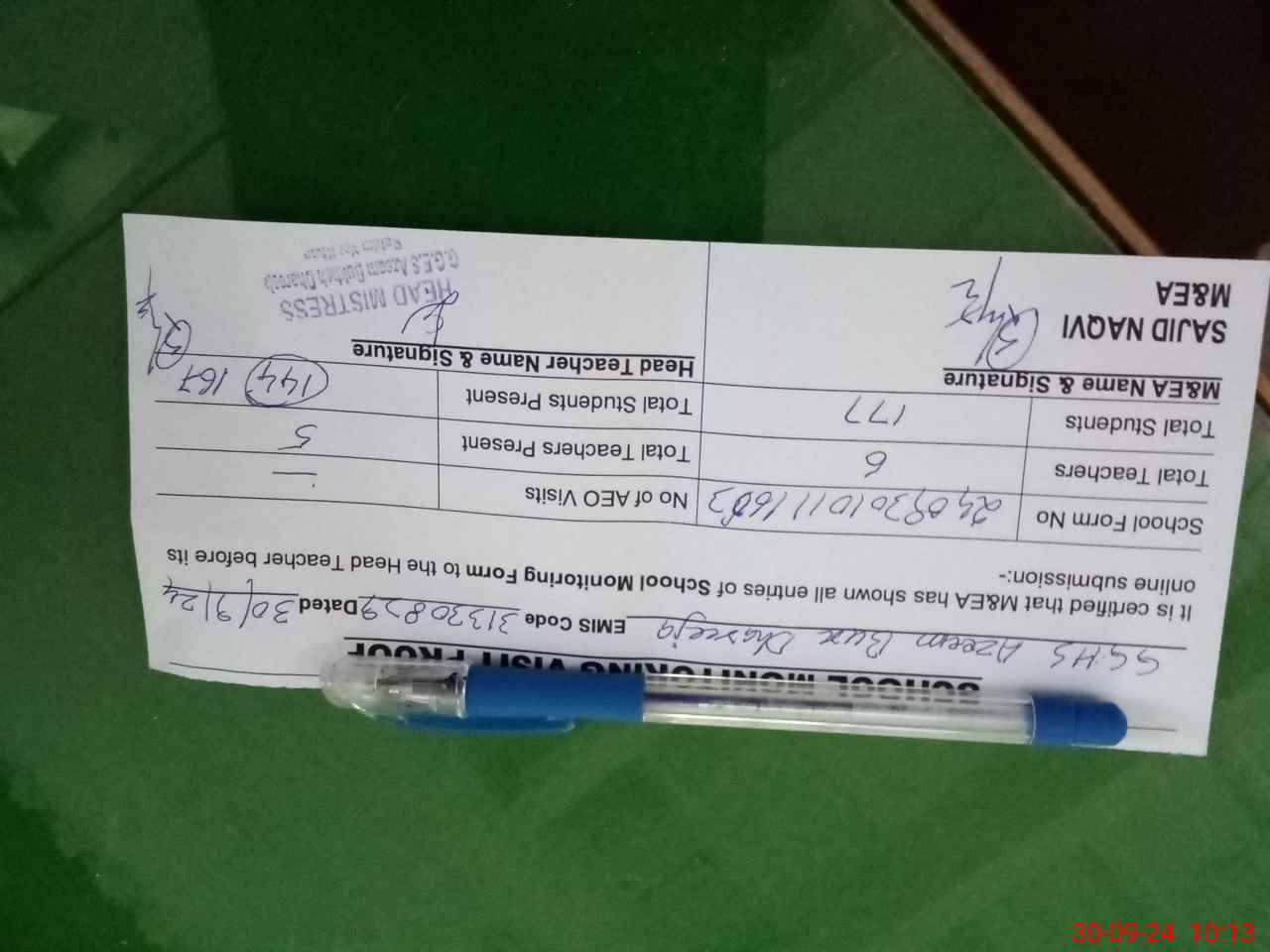 | Name: Sh**** Gh**** Na**** Designation: (School Headmaster's/Headmistress's) EST Phone/Cell Number: 03**** |