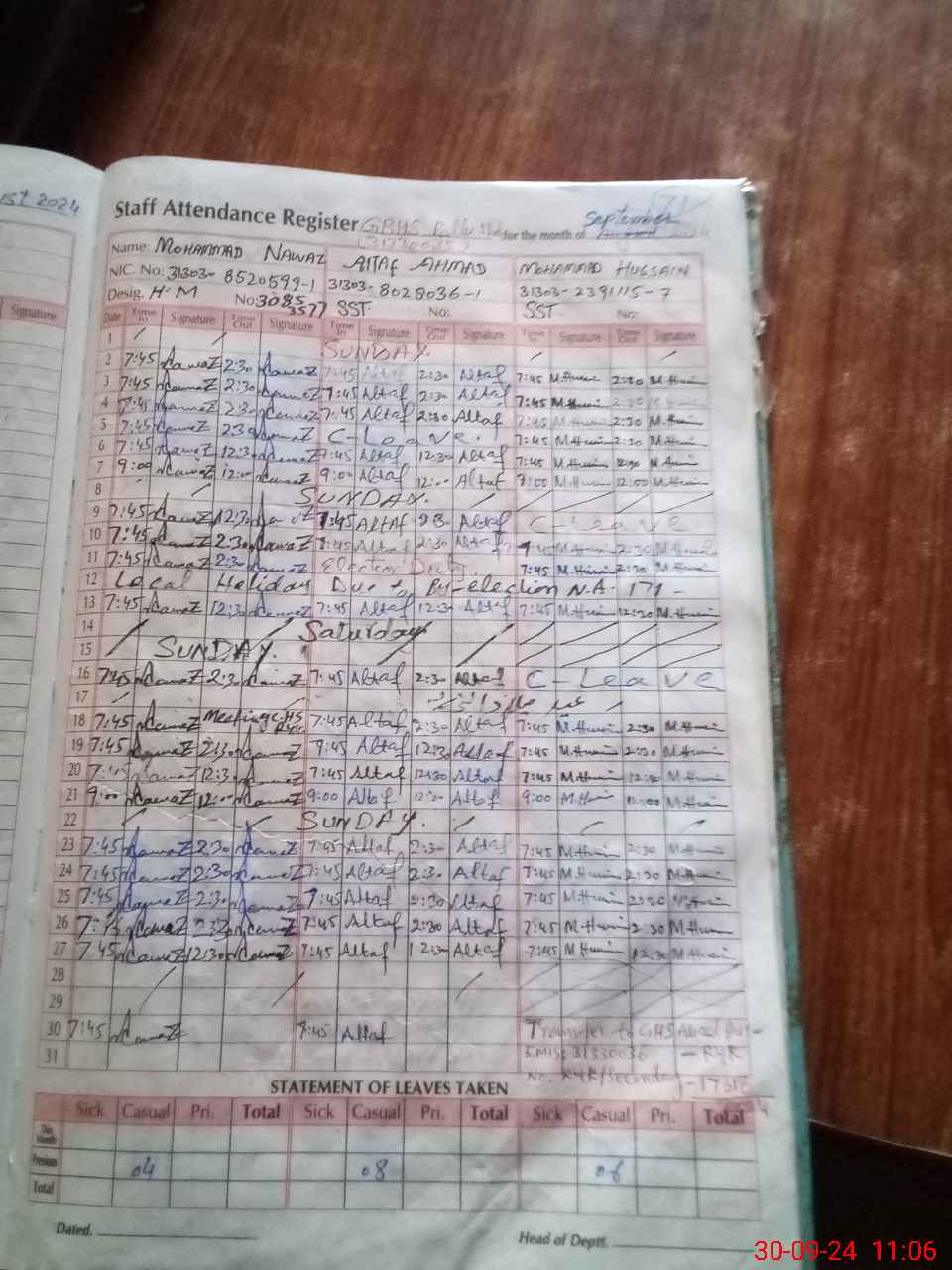 | 31**** | Ju**** Fa**** | SST | Regular | 0 | 0 | 0 | 0 | 0 | 0 | 0 | 0 | 0 | Absent (Un-Authorized) |