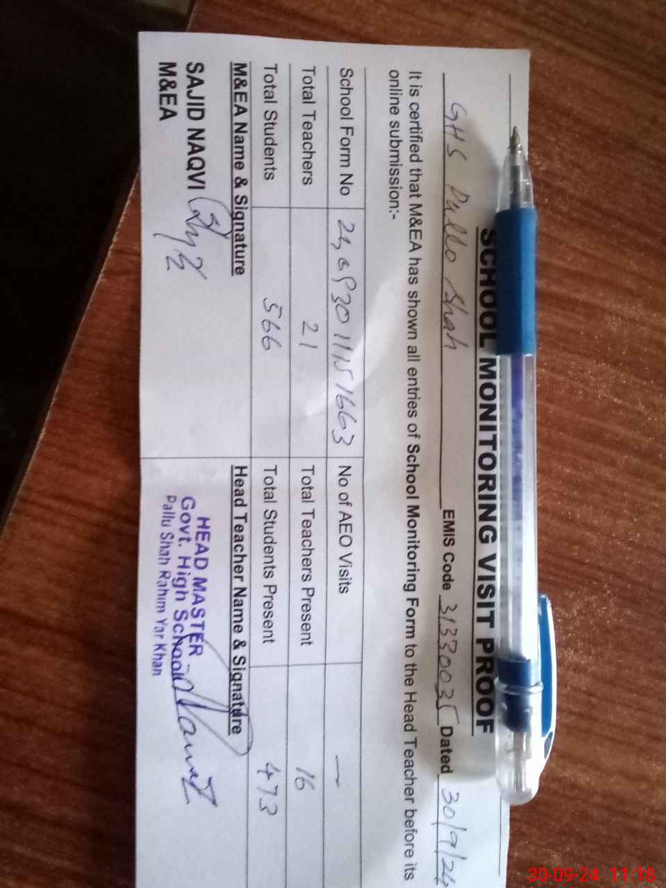 | EMIS Code: 31330035 | Name of School: GHS PULLO SHAH | |||