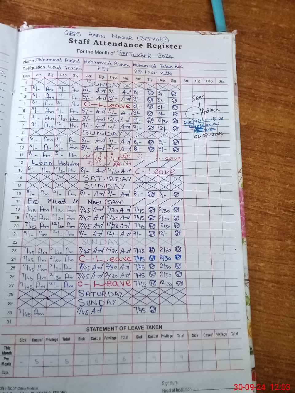 | Name: MU**** AM**** Designation: (School Headmaster's/Headmistress's) PST/PTC/JV Phone/Cell Number: 03**** |