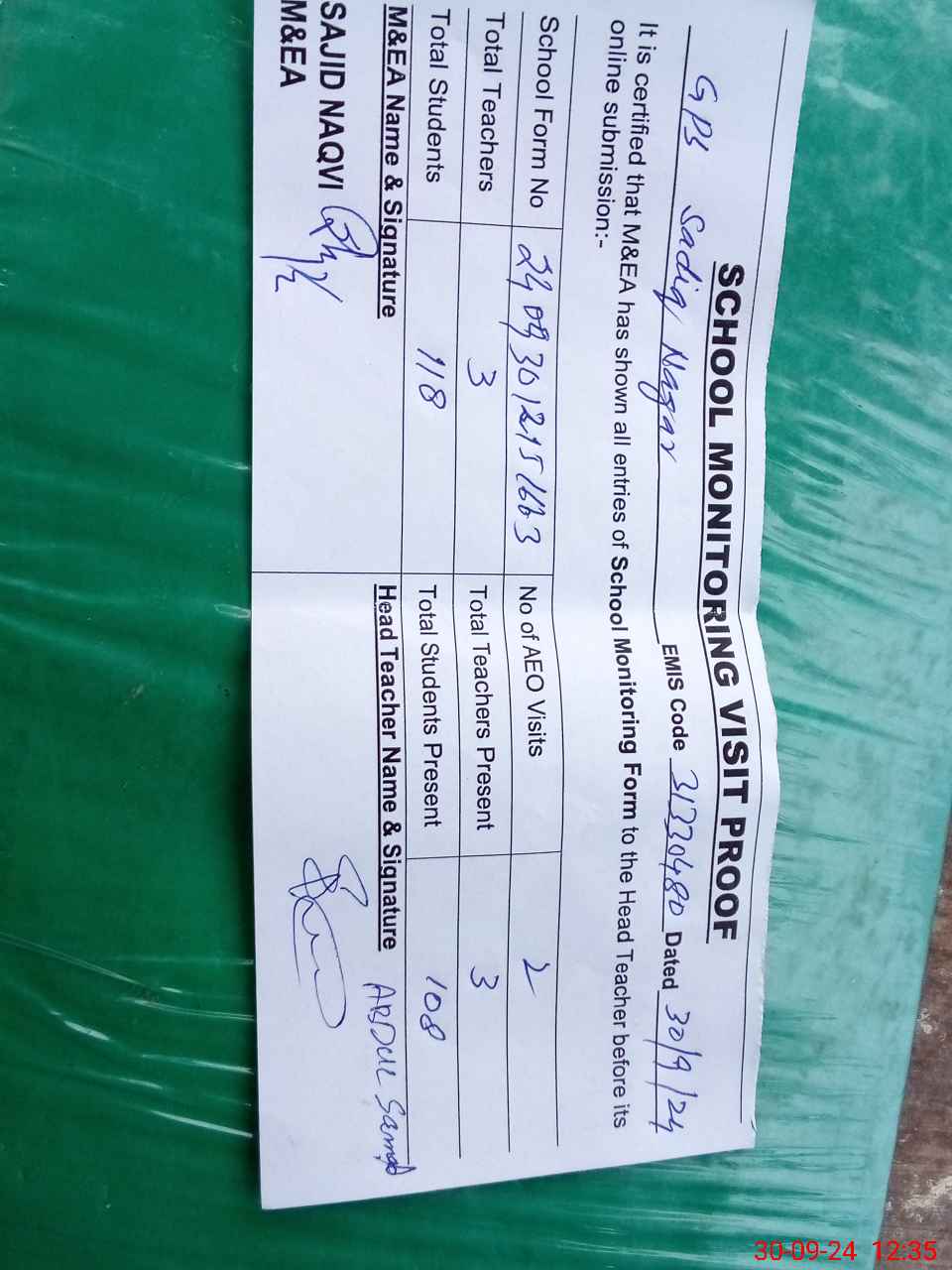 | EMIS Code: 31330480 | Name of School: GPS SADIQ NAGAR | |||