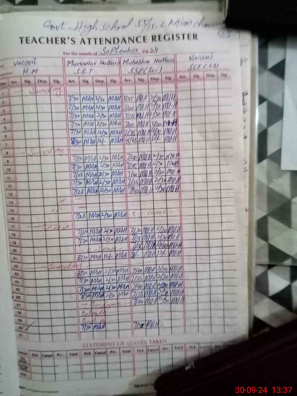 | EMIS Code: 36430057 | Name of School: GHS 55/15-L, MIAN CHANNU | |||