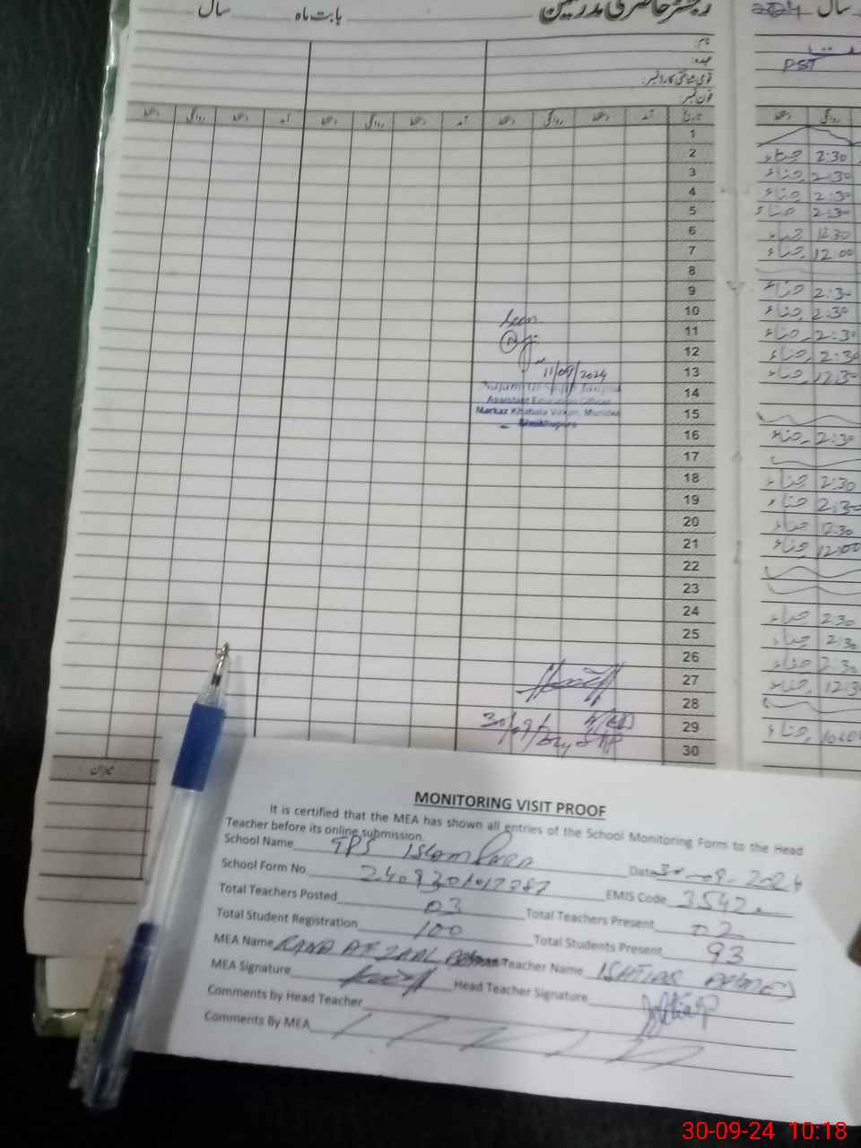 | Attendance Register | Head Teacher | MEA with School | Visit Proof |