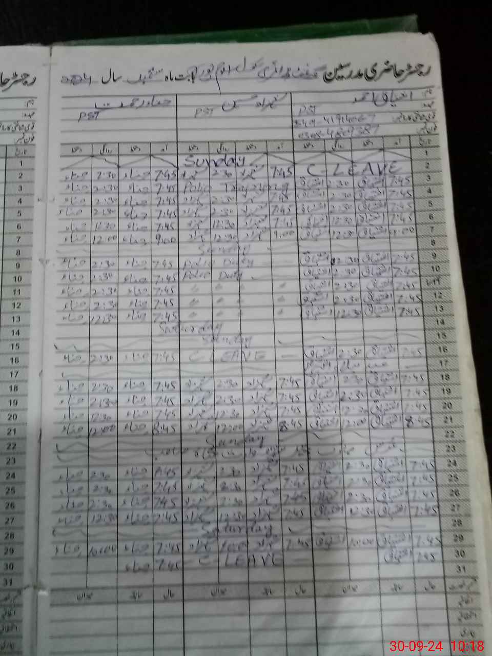 | Leave | Duty | Absent | Maternity | Medical | Ex- Pak |