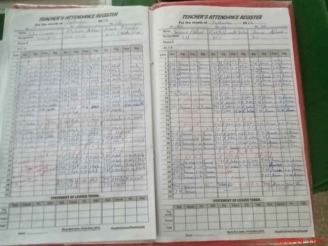 | Name: NA**** MA**** Designation: (School Headmaster's/Headmistress's) EST Phone/Cell Number: 03**** |