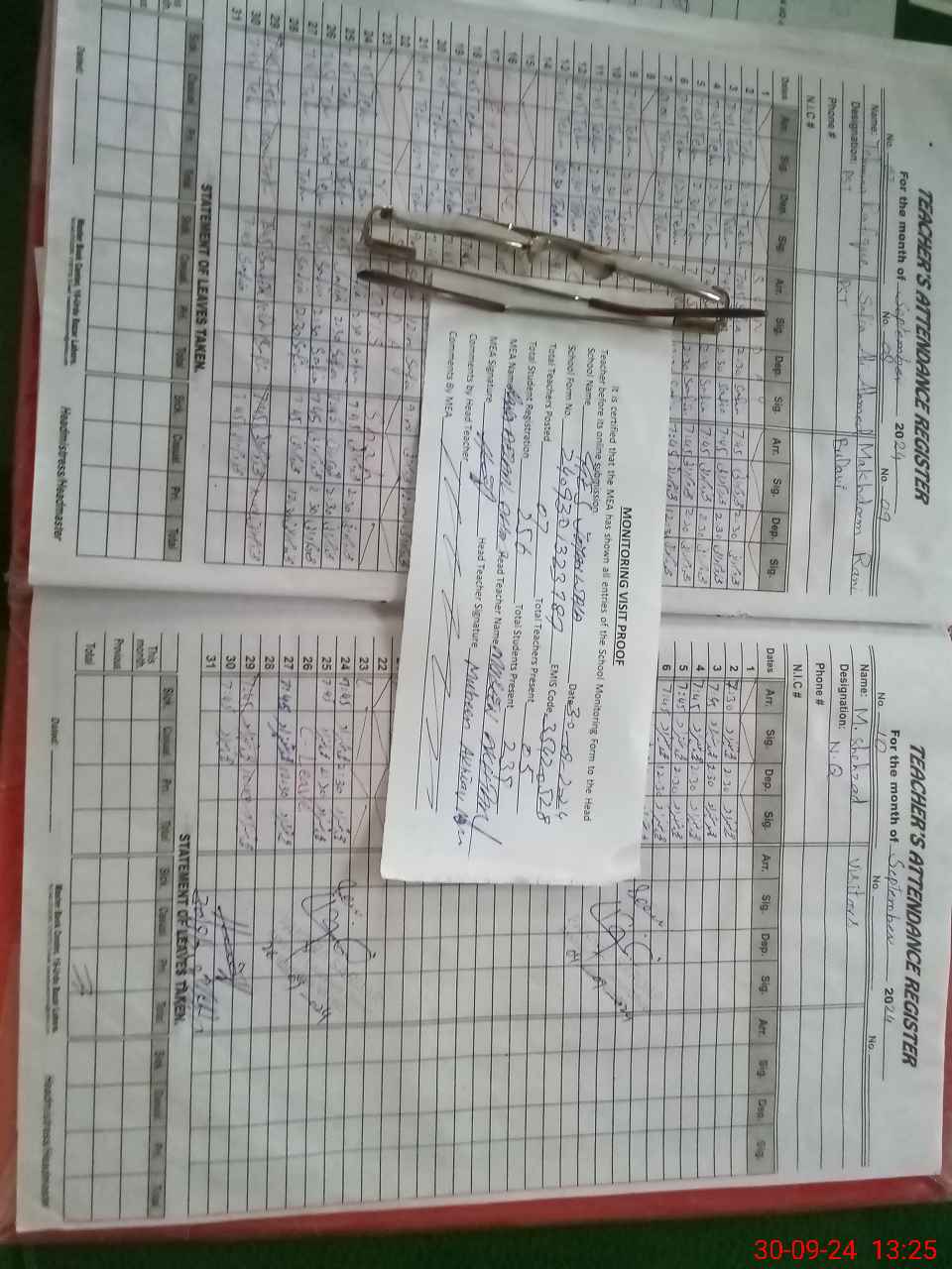 | Attendance Register | Head Teacher | MEA with School | Visit Proof |