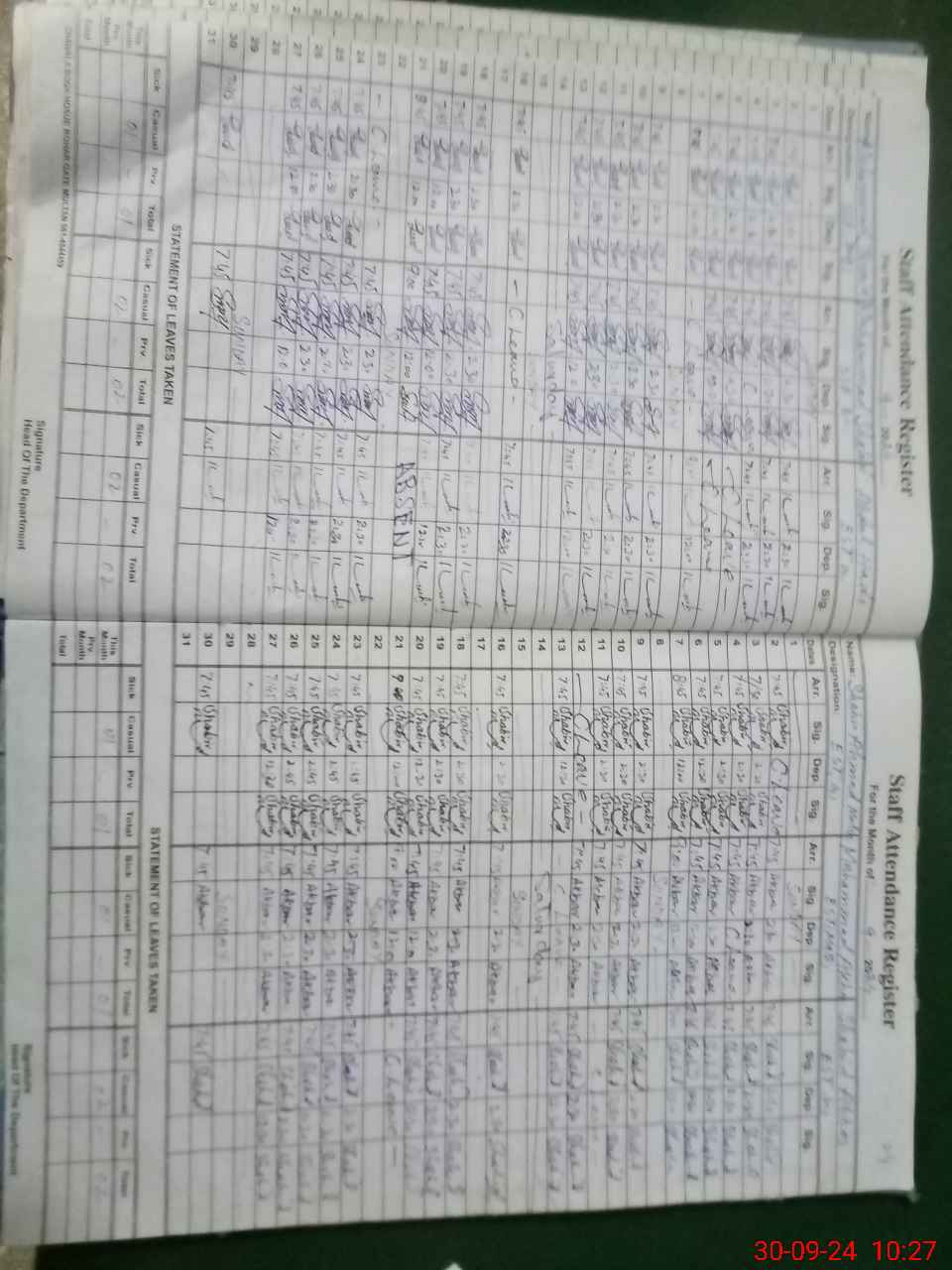 | Leave | Duty | Absent | Maternity | Medical | Ex- Pak |