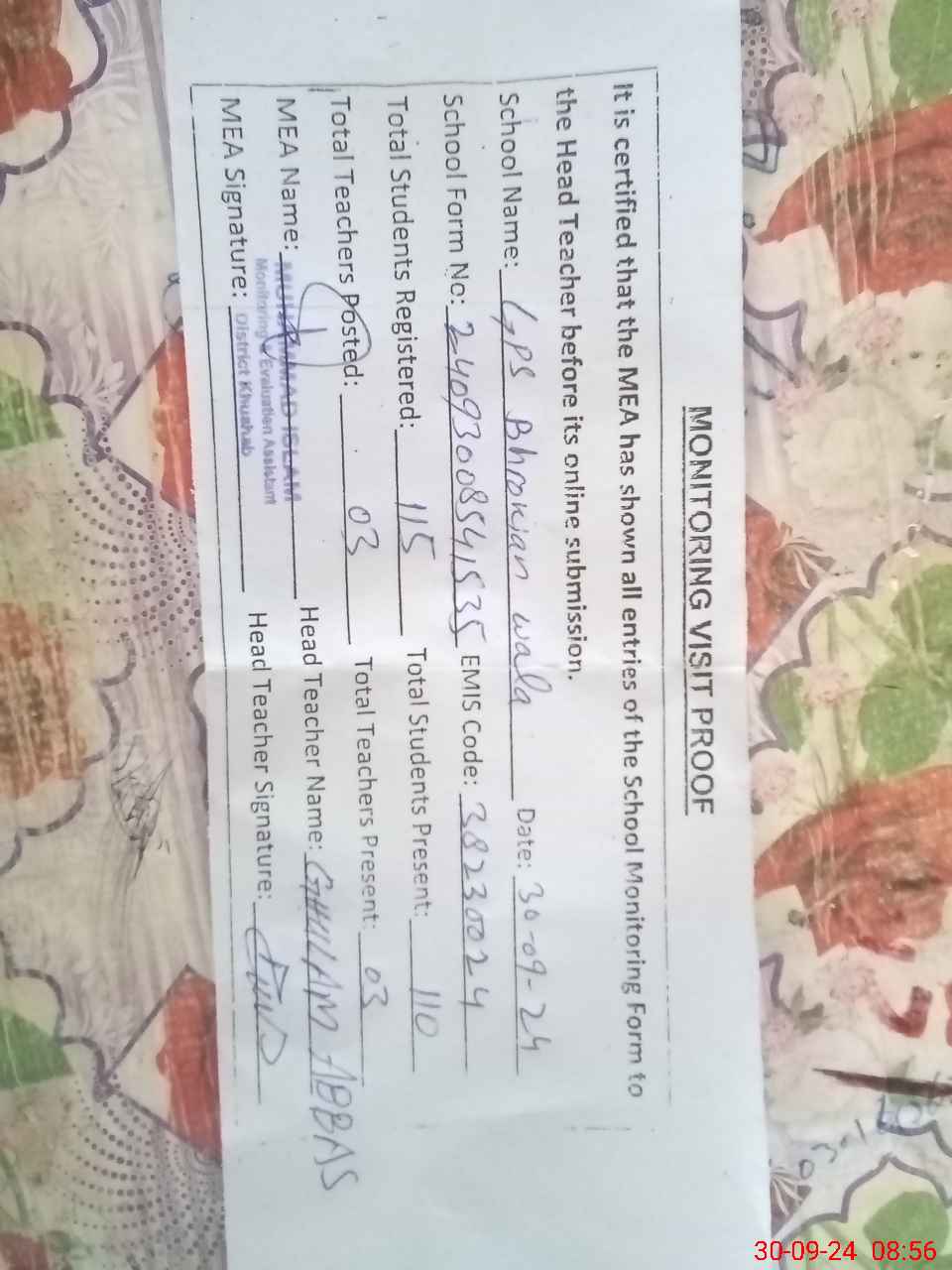 | EMIS Code: 38230024 | Name of School: GPS BHROKIAN WALA | |||