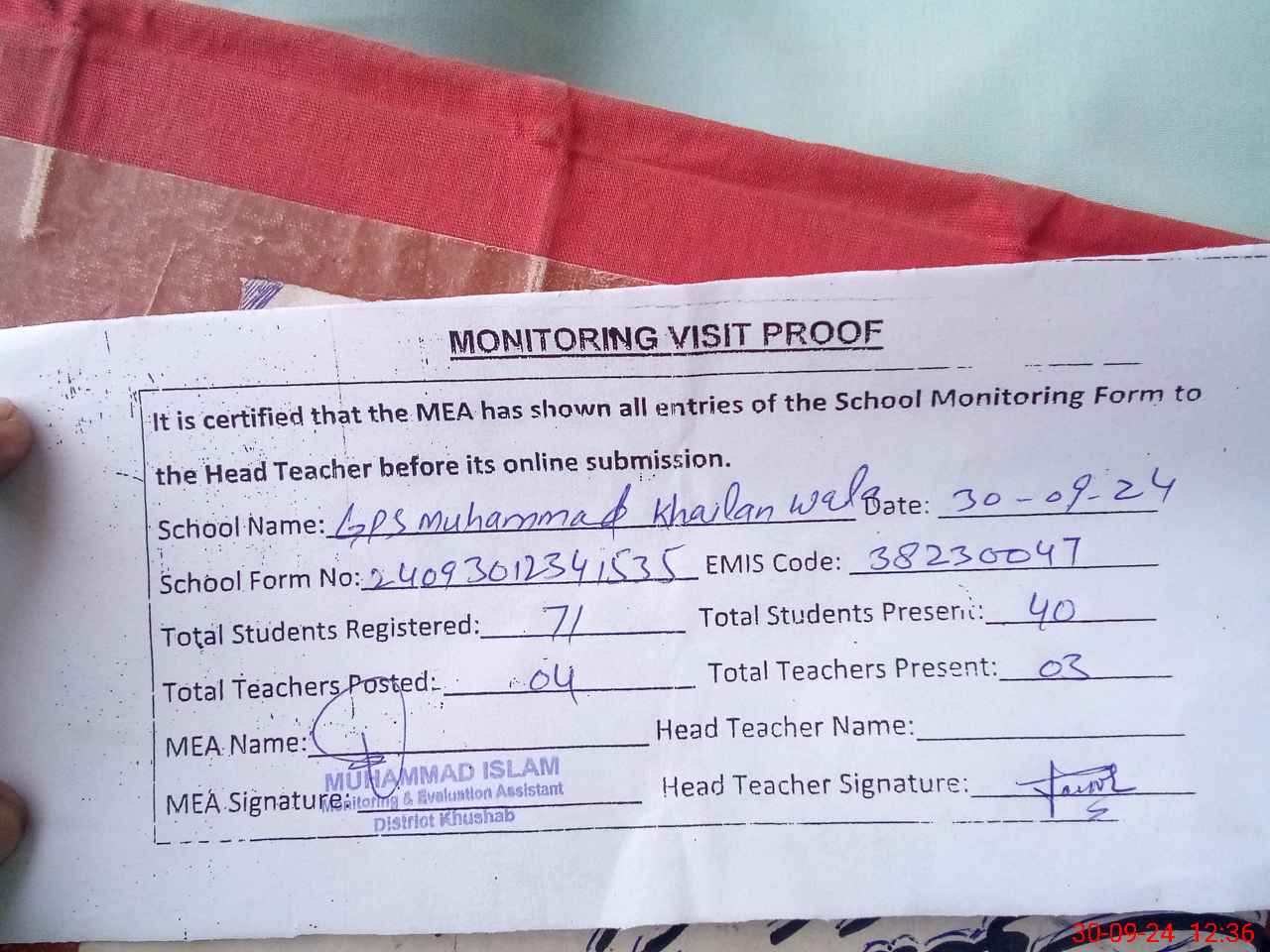 | EMIS Code: 38230047 | Name of School: GPS MUHAMMAD KHAILAN WALA BANDIAL | |||