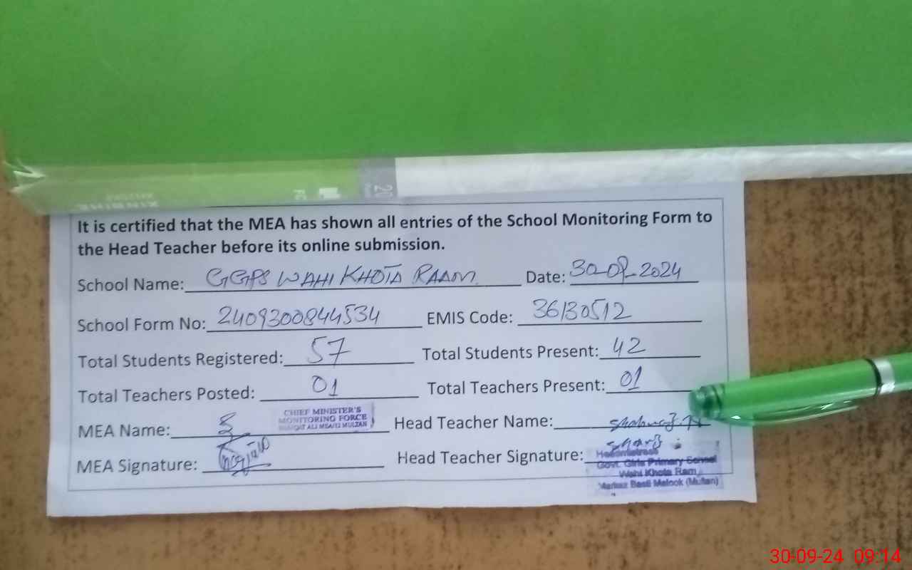 | EMIS Code: 36130512 | Name of School: GGPS WAHI KHOTA RAM | |||
