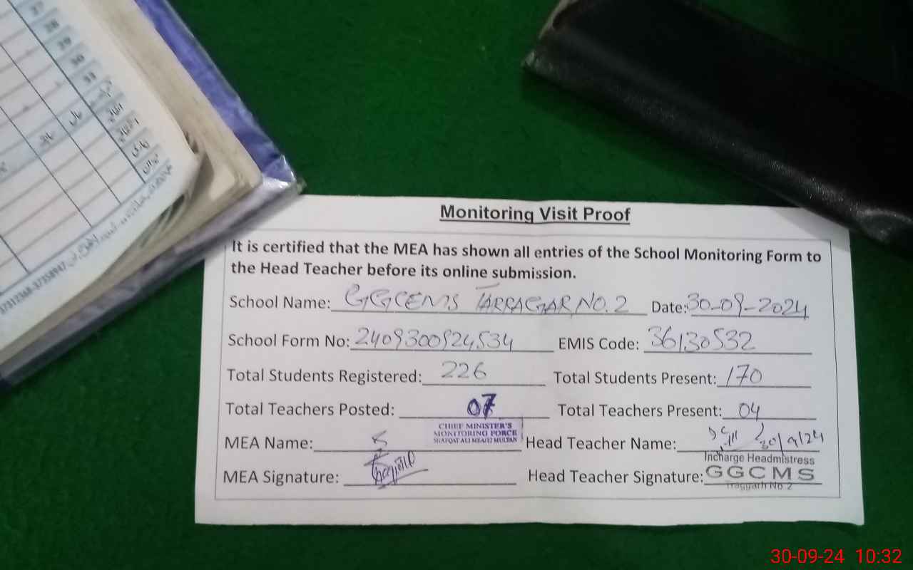 | EMIS Code: 36130532 | Name of School: GGCMS TARAGAR NO.2 | |||