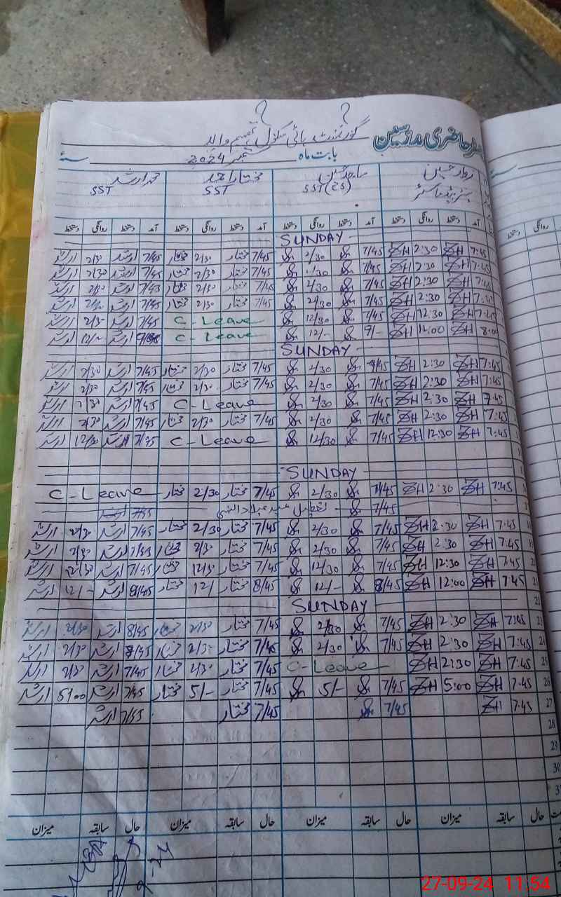 | CNIC | Full Name | Designation | R/C | Absence During Last Calender Month |